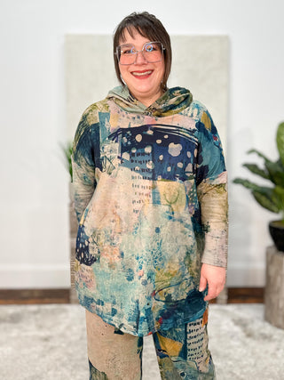 "One of my favorite Alembikas! I love this tunic! The weight for winter is perfect—cozy but not too heavy. The design is just lovely—especially good, I think, for a pear-shaped figure. The pattern of the fabric is just delicious—interesting but not too busy. One of my favorite Alembikas!"