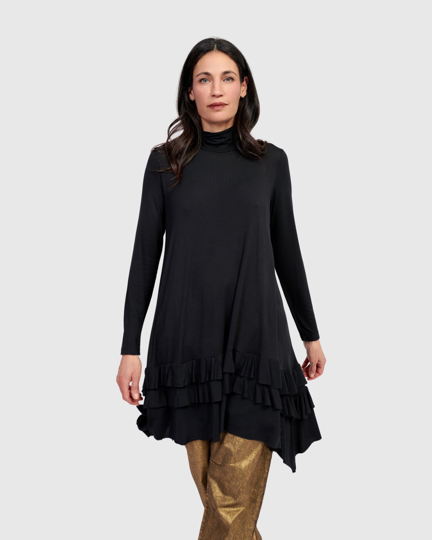 Ruffled tiers give this jersey tunic a playful silhouette with an elevated edge. Soft and stretchy with a mock neck and slim sleeves, it's a cozy yet chic piece that layers seamlessly through the seasons.