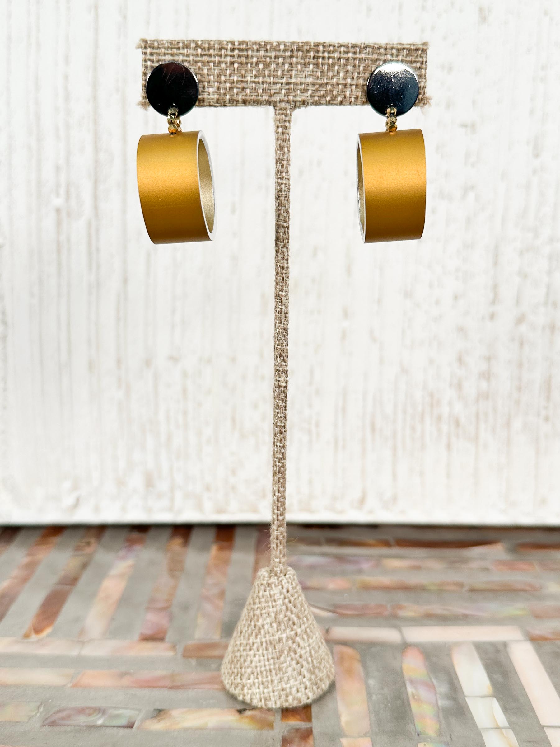 Aluminum Hoop Drop Earrings, Matte Gold