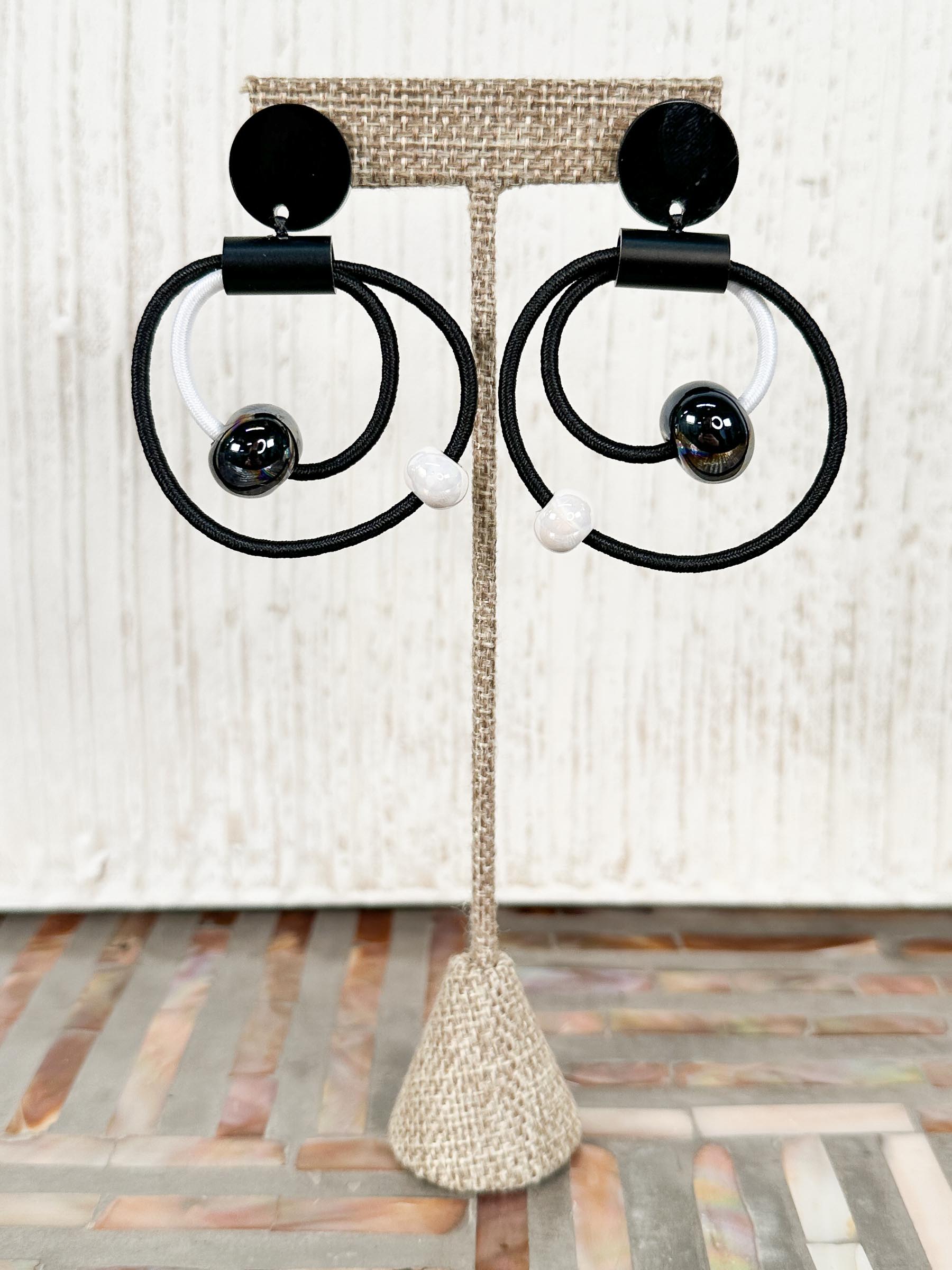 Cord Loops & Ceramic Bead Earrings, Black