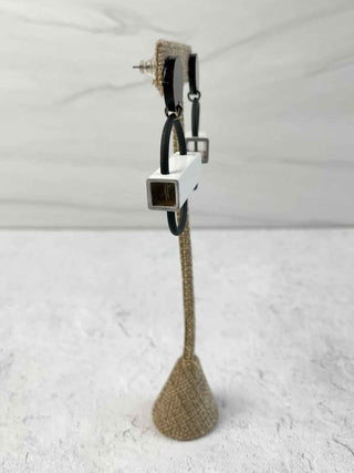Bead Dangle Petite Wire Drop Earrings, Silver/Black/White