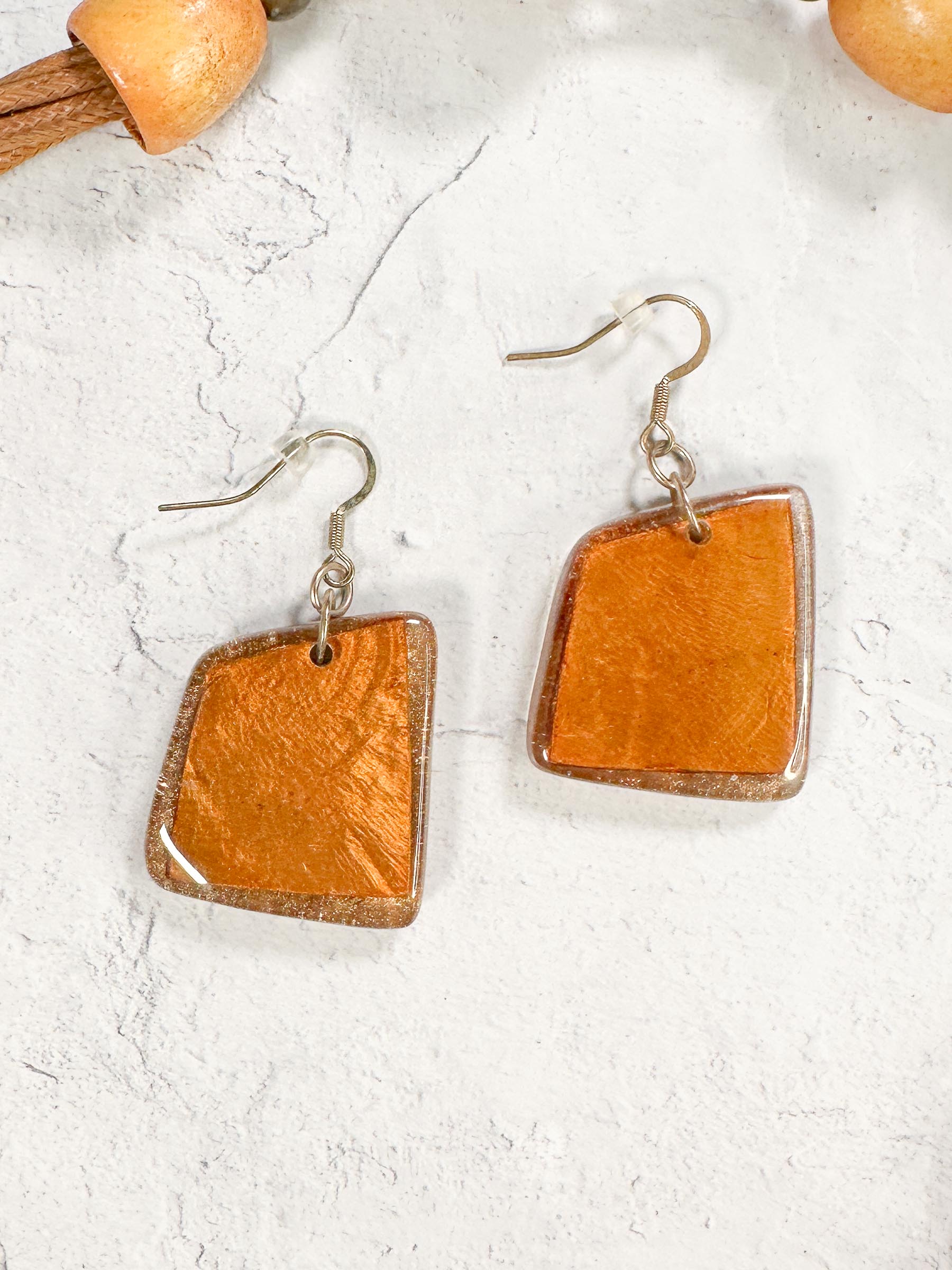 - Resin, wood beads, cord