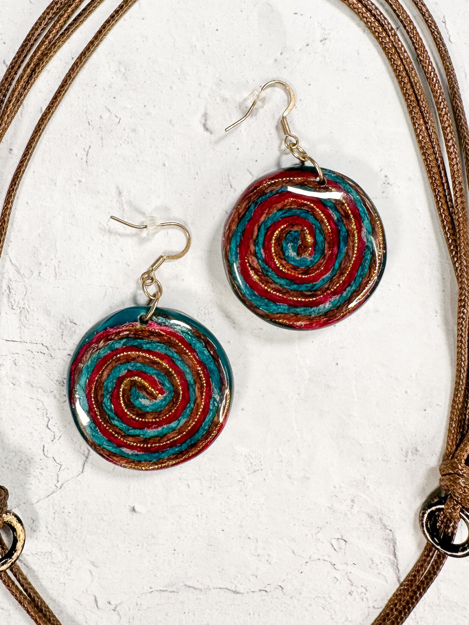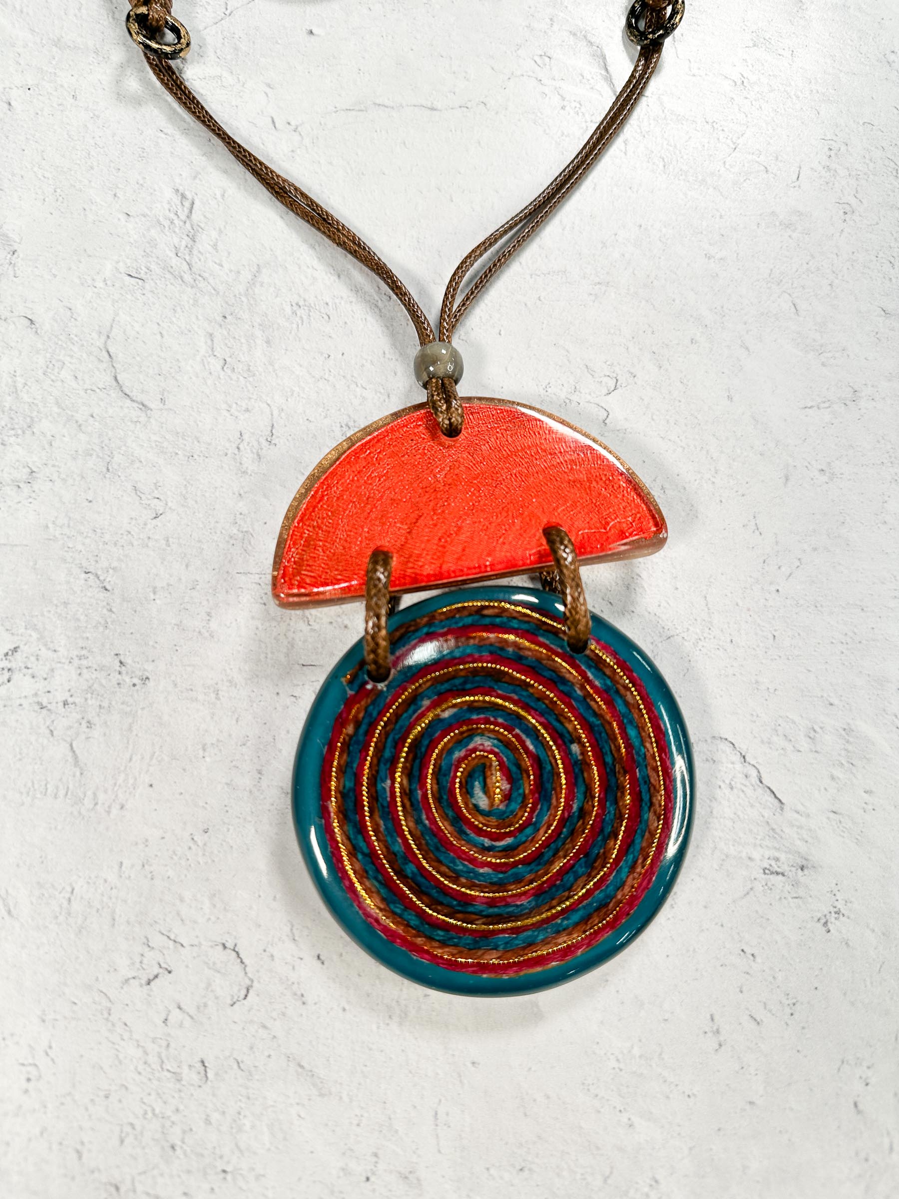 Geometric Swirl Pendant Necklace & Earrings Set, Teal/Orange