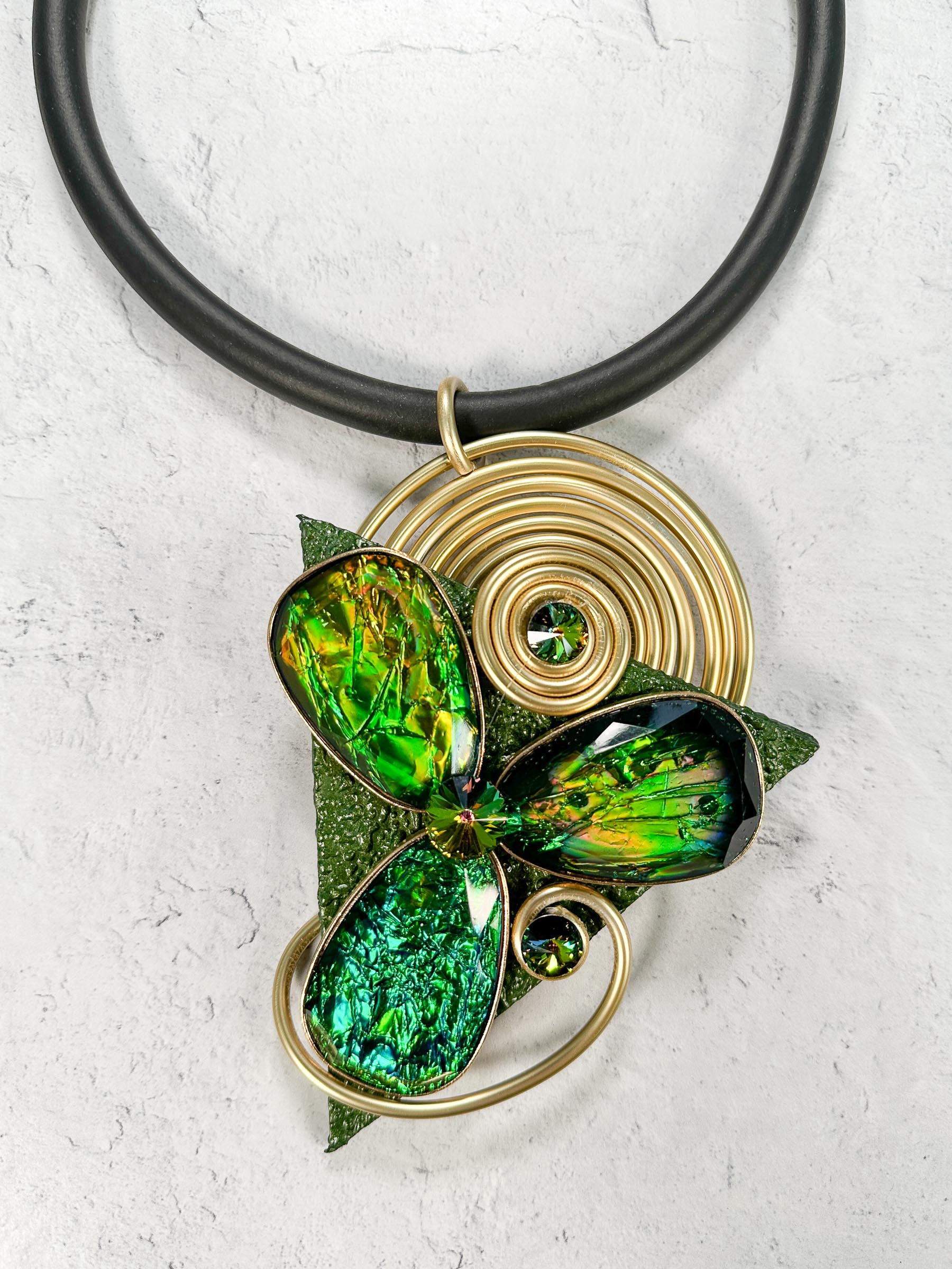 Mixed Media Pendant Rubber Necklace, Gold/Green