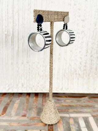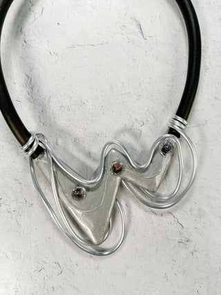 Large Round Ribbon & Wire Pendant Rubber Necklace, Silver/Gold