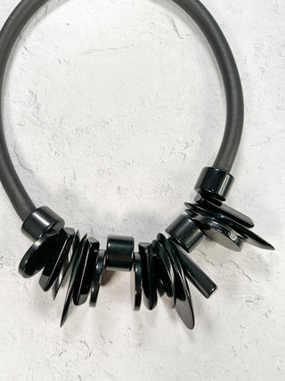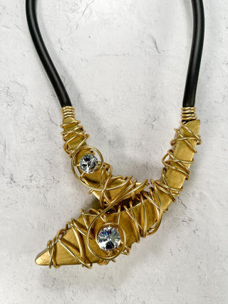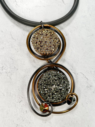 Duo Wire Crystallized Pendant Rubber Necklace, Copper/Black