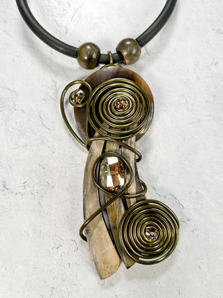 Mixed Wire & Shapes Pendant Rubber Necklace, Copper/Bronze