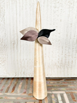 The Round Convex Drop Earrings feature a large round convex leather disc in a metallic print, dropped from a coordinating leather post for a lightweight, sculptural look. Modern and artful, they add an effortless touch of shine to any outfit.