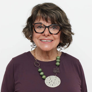 Contemporary looks from the master of mixed media. Hand-crafted in the artist's Chicago area studio, the collection mixes lightweight aluminum wire with resin, stone, wood and sparkling crystals.