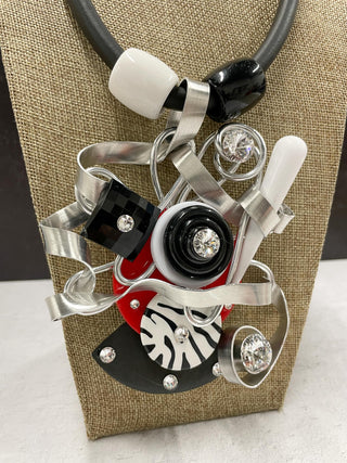 Kinetics Necklace, Black/White Mud Butterfly