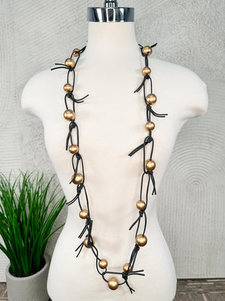 Round Beads on Leatherette Chain Necklace, Gold/Black