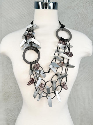 Asymmetric Ring & Wood Necklace, Black/Silver