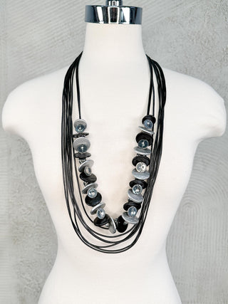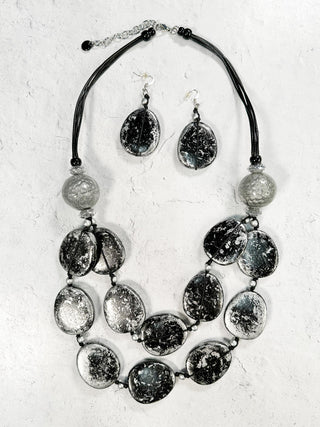 Multi Strand Wood Bead Necklace & Earrings Set, Black/Silver