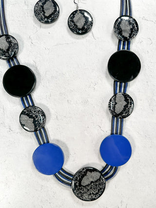 Multi Strand Resin Station Necklace & Earrings Set, Blue