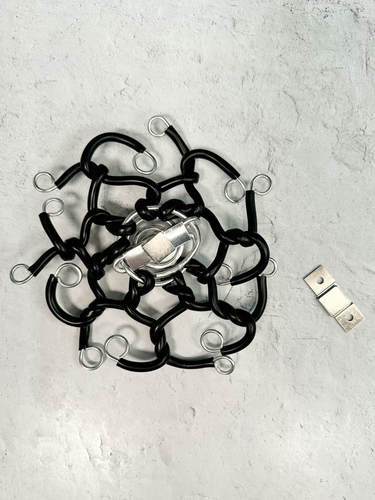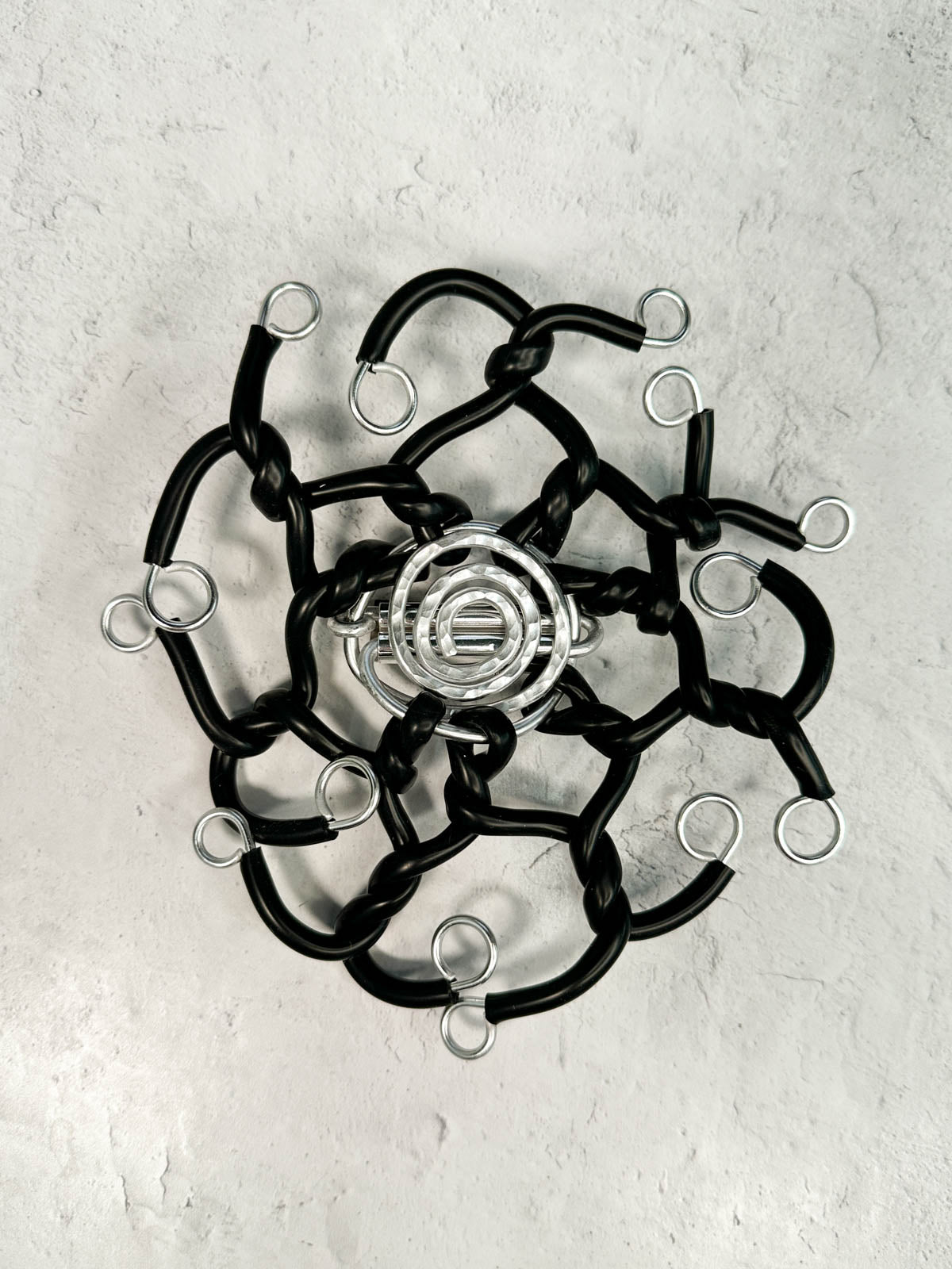 OC's Ursula Magnet Brooch extra large statement piece that features rubber covered aluminum wire sculpted into tentacle swirls. Magnetic backing allows for damage free use on clothing and scarves. The brooches can also be added to one of OC's magnetic bases to convert into a necklace.
