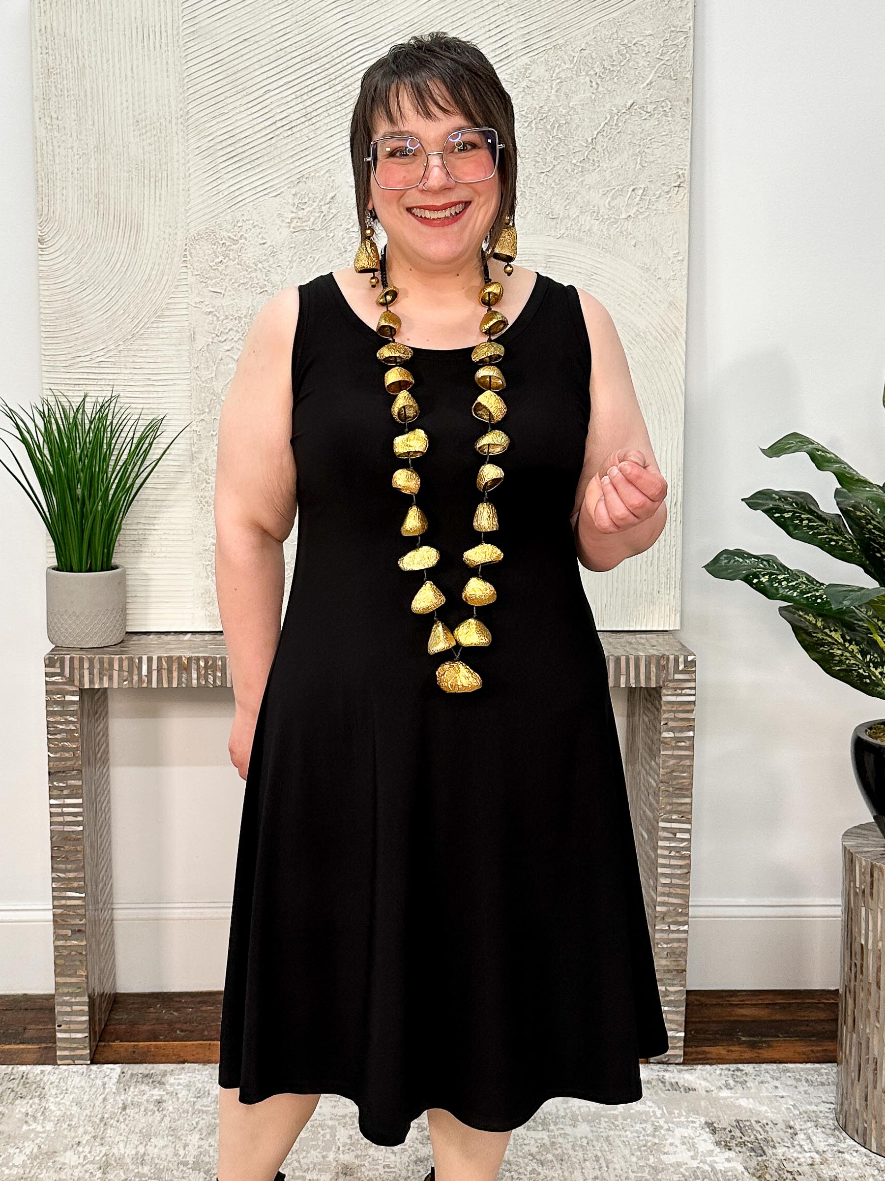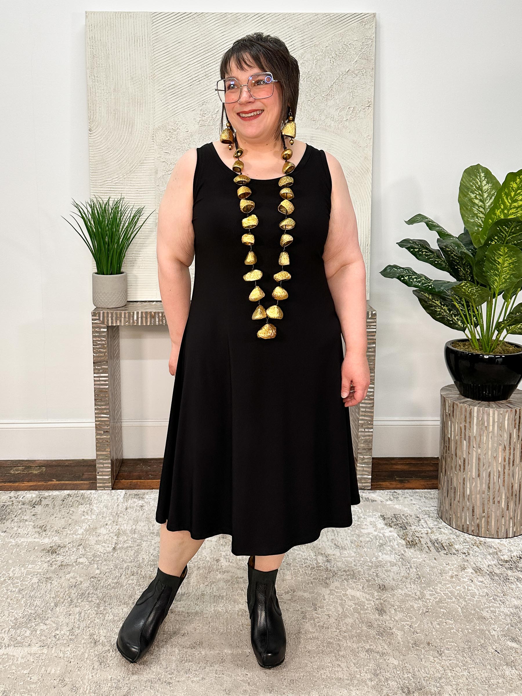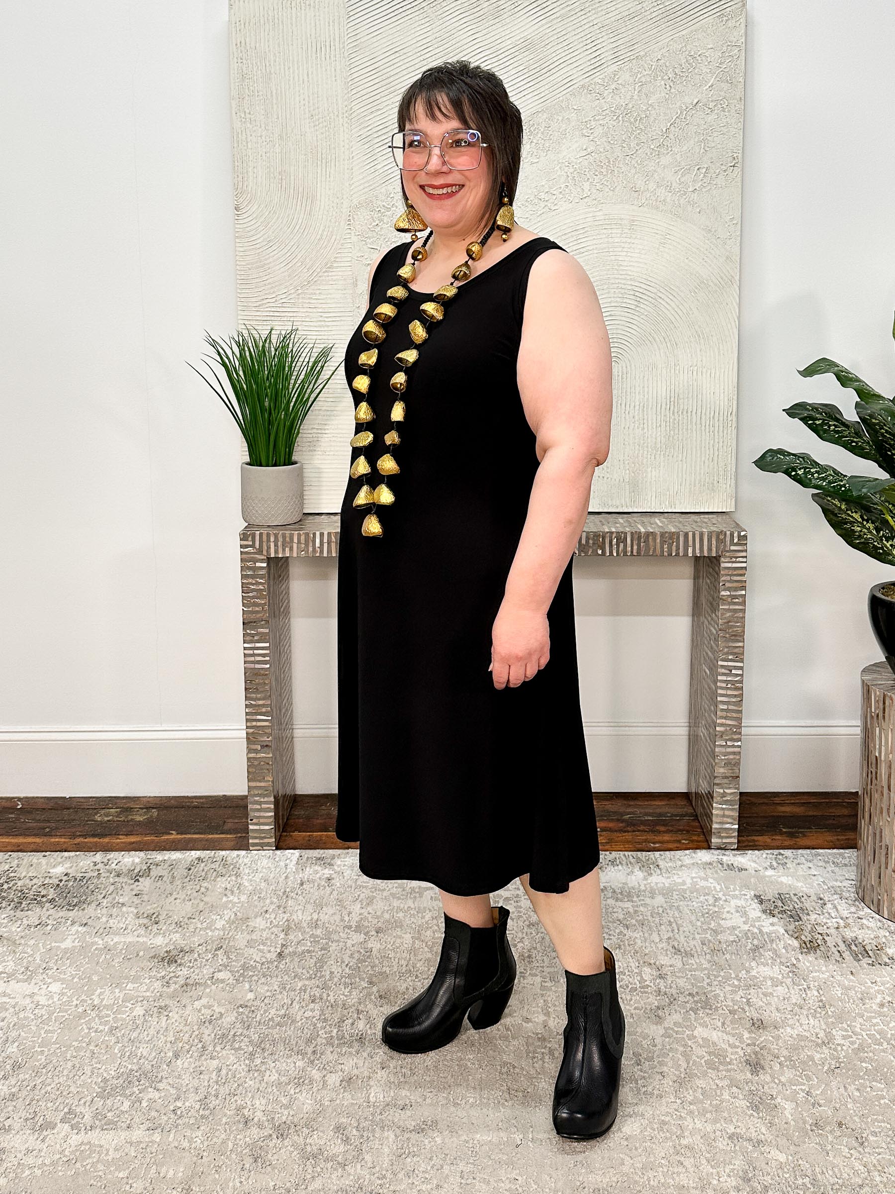 The Nu Tank Dress Short is an essential wardrobe staple with its slim A-line body that skims the figure and knee-length finish. Designed with bra-friendly tank straps, a banded round neckline, and Sympli’s signature travel-friendly jersey, it’s the perfect piece to dress up or down — effortless on its own and equally chic layered under mesh toppers, cardigans, or tailored jackets. A true everyday workhorse you’ll reach for again and again.