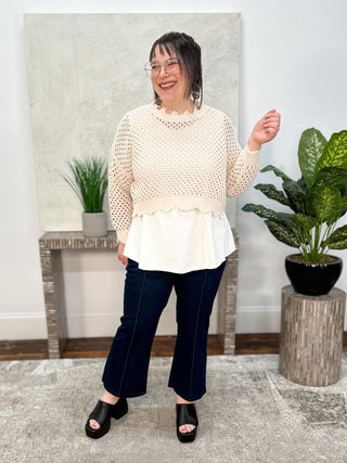 Plaid Jacquard Sweater Knit Top, Merlot/Multi