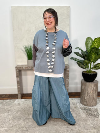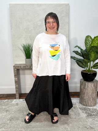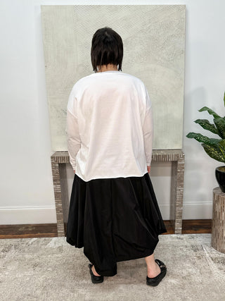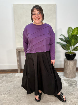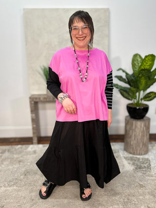 Oversized Mix Panel Step Hem Top, Black/Brown