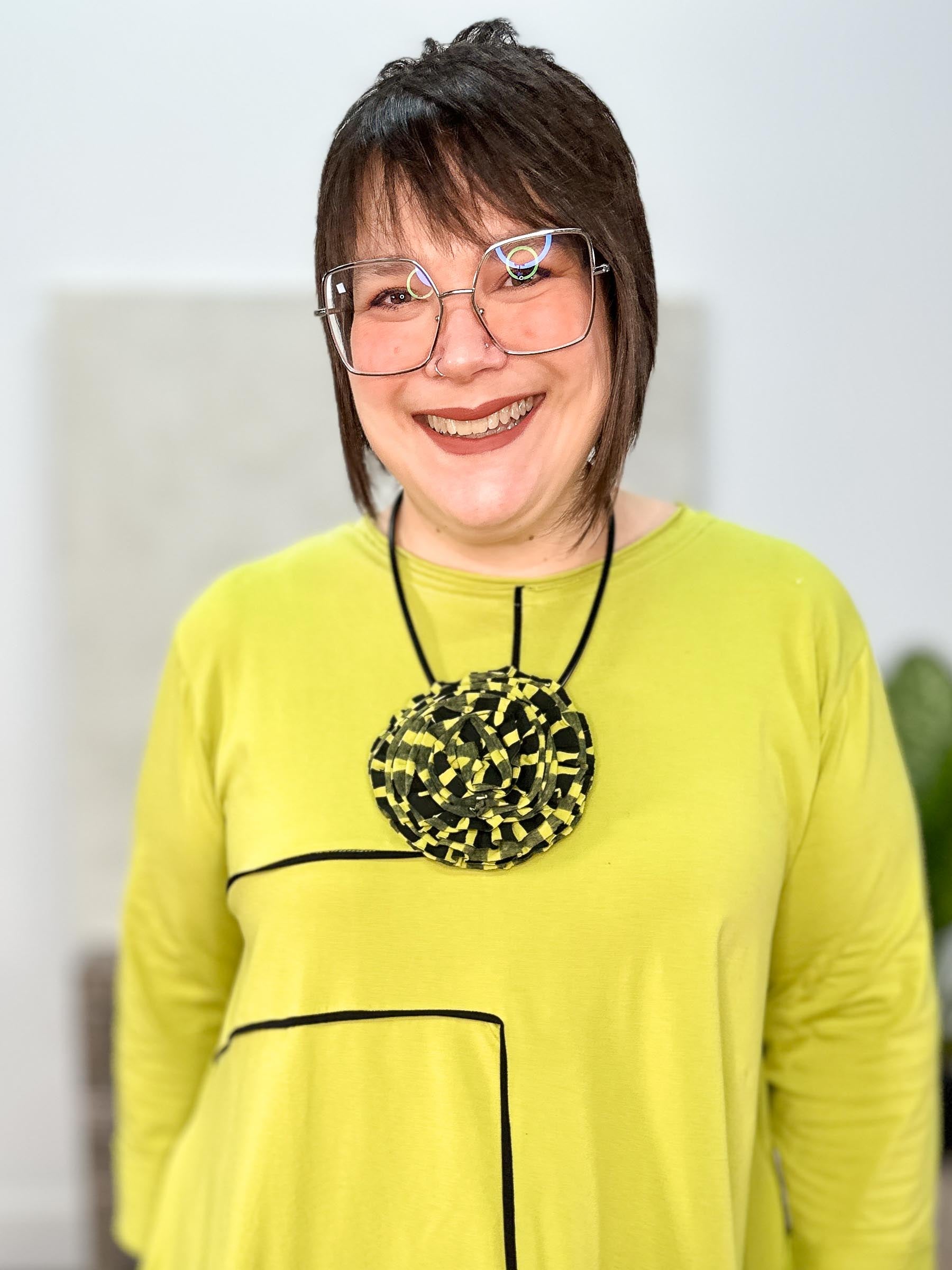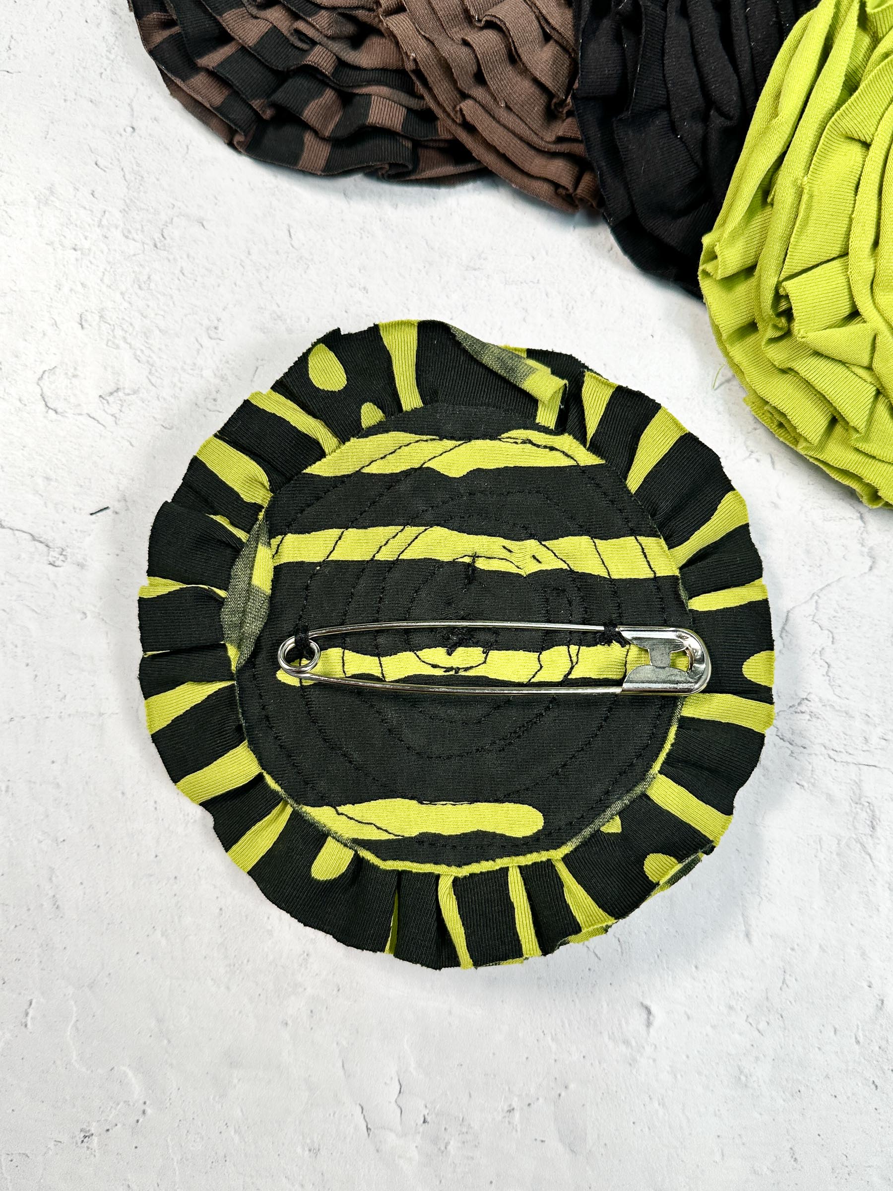 The Flower Pin is a whimsical accent piece crafted from soft jersey knit that coordinates perfectly with the Bread & Butter Italy collection. Designed in a rosette shape from spiraled knit fabric, it brings a touch of playful texture and charm to any look. Finished with an oversized safety pin backing, it can be worn as a brooch or styled creatively - try adding it to one of our OC Jewelry necklace extender cords for a simple, artful pendant necklace.