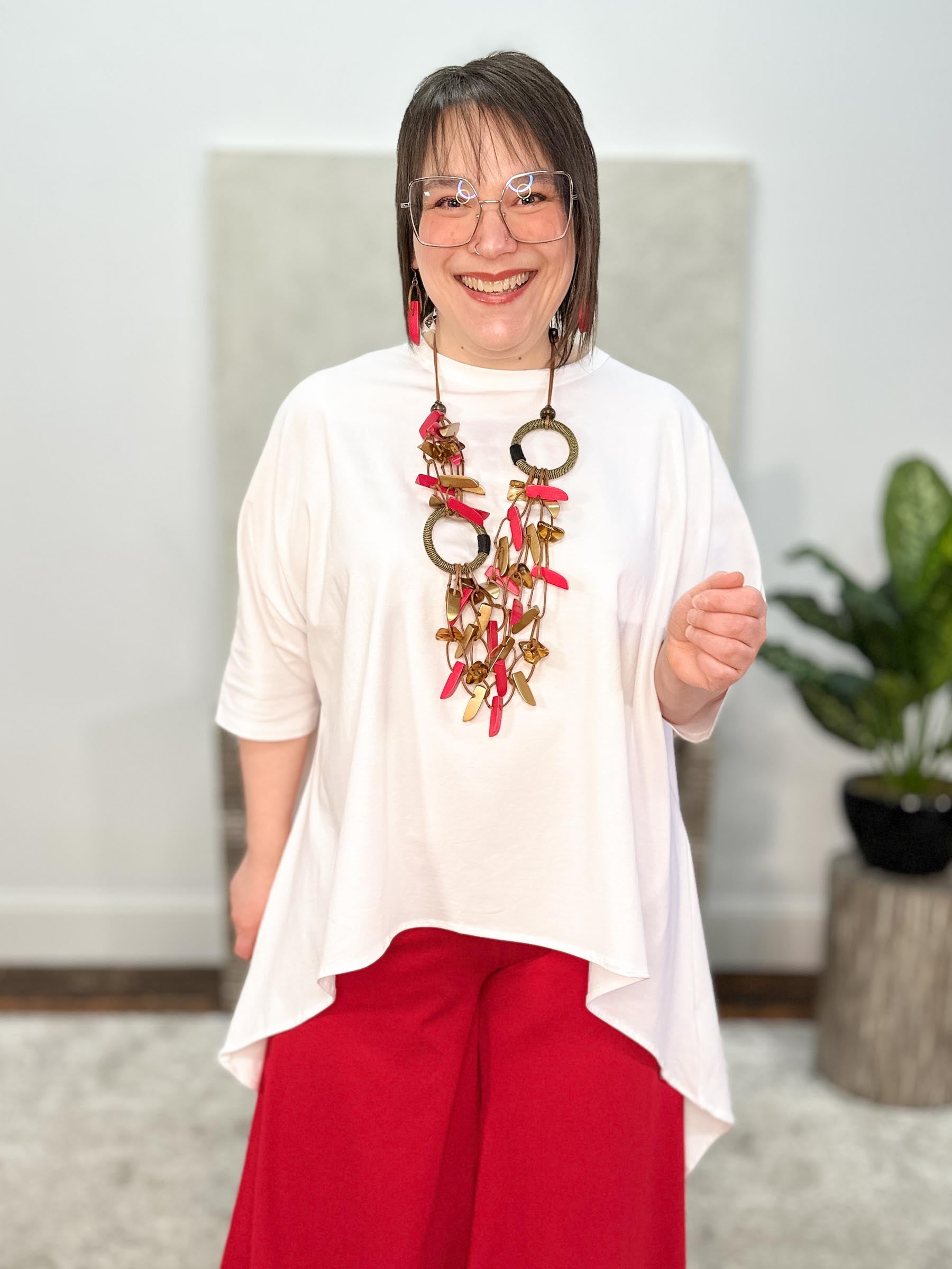Asymmetric Ring & Wood Necklace & Earrings Set, Gold/Red