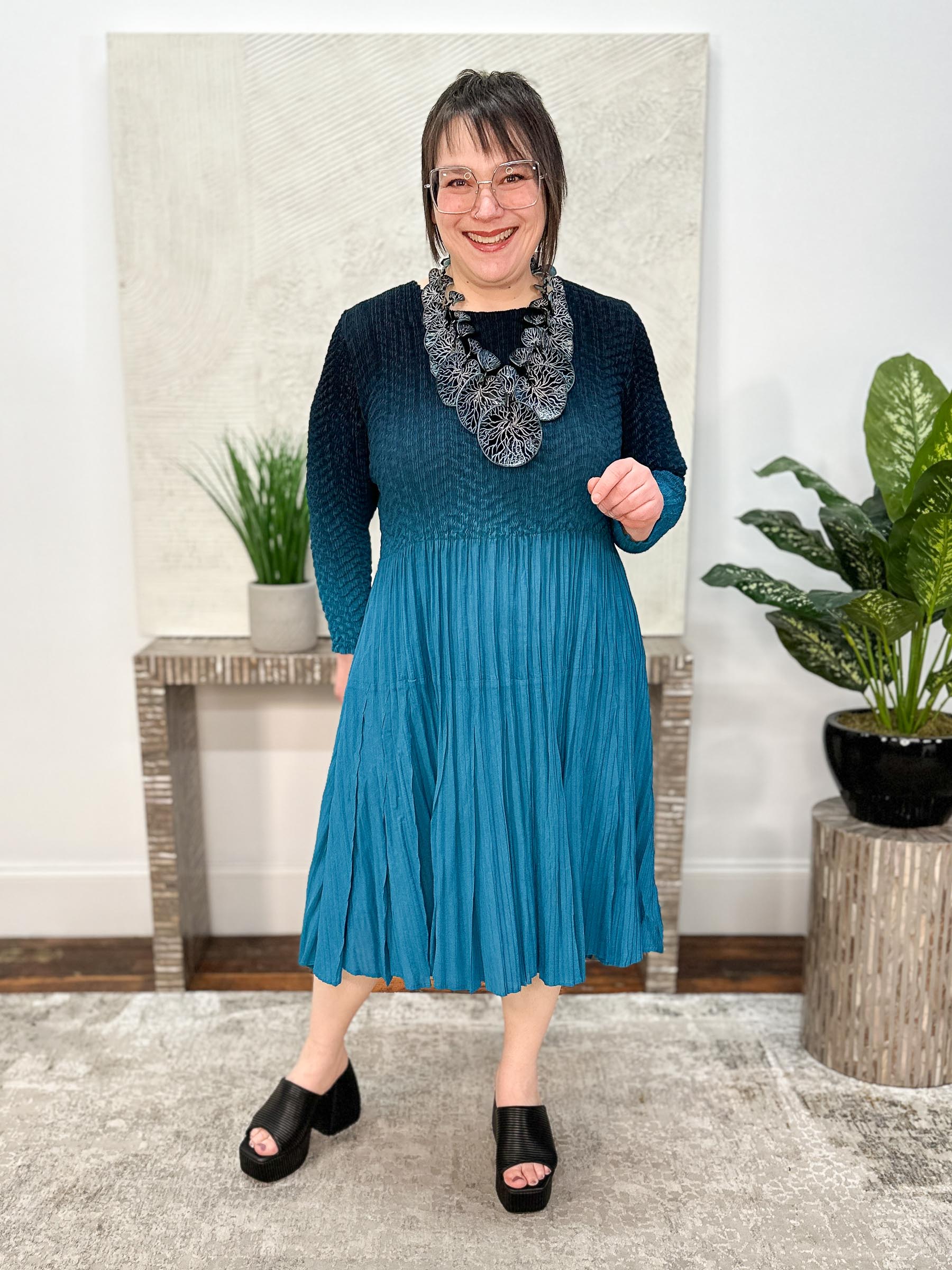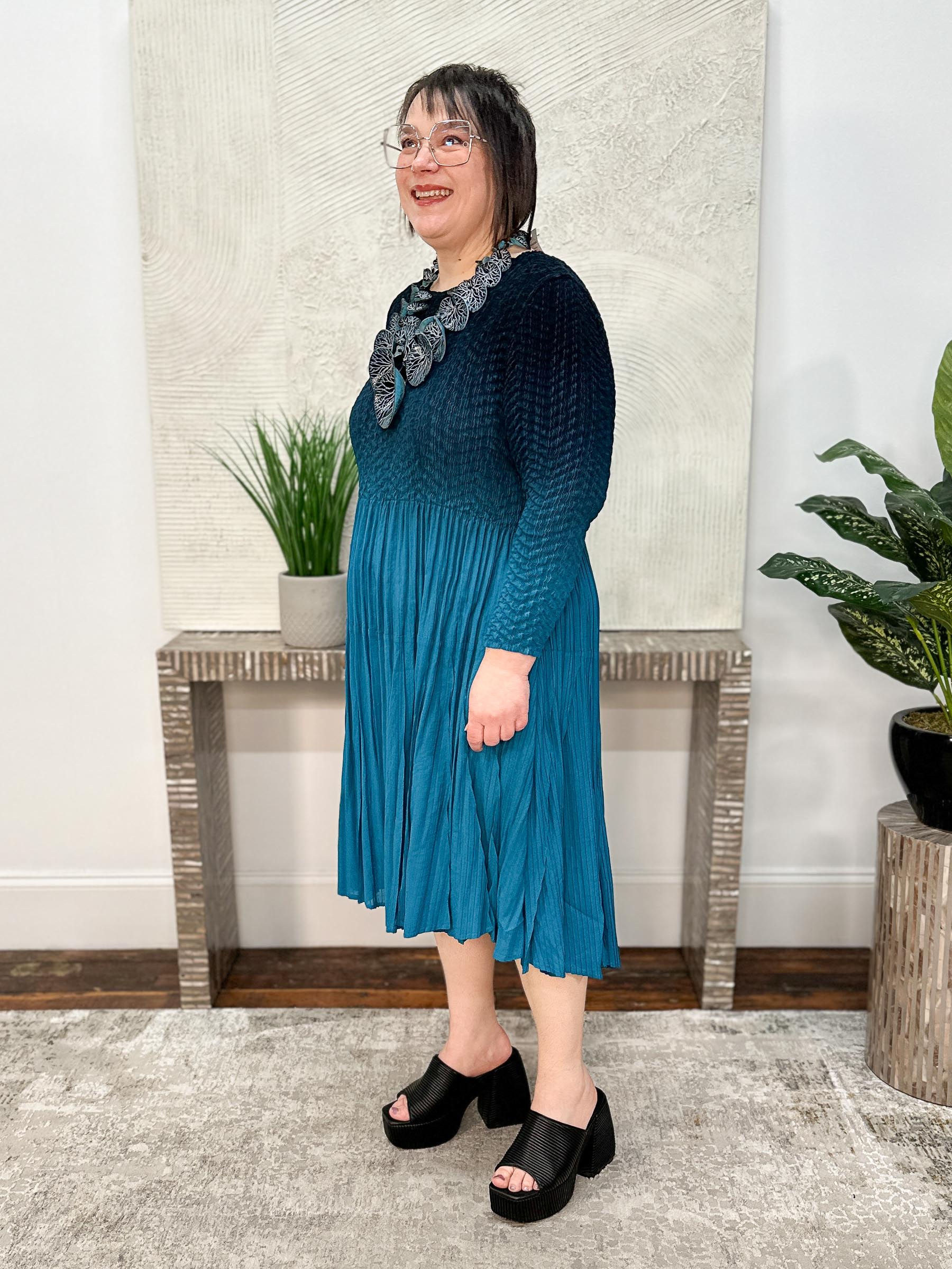 3/4 Sleeve Ombre Dress, Teal